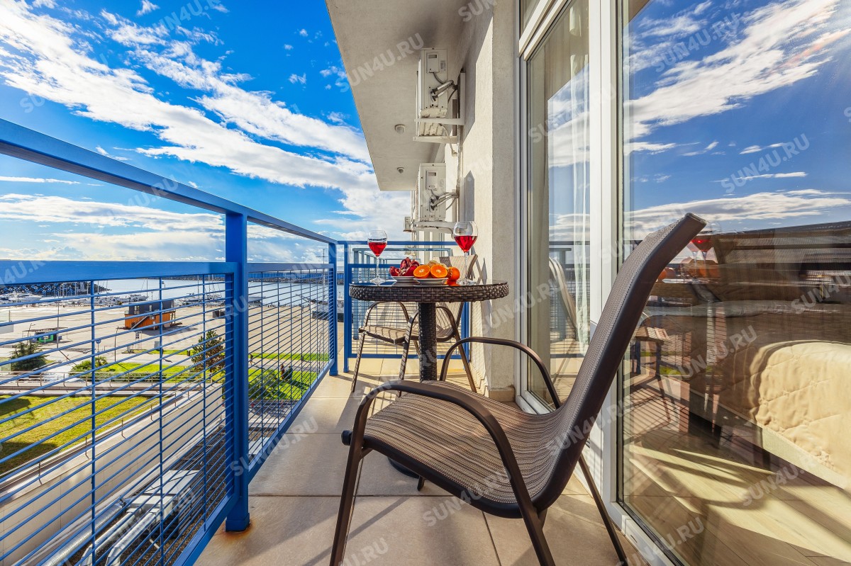 Уютная просторная студия в Морском квартале с прямым видом на море и двор в котором располагается бассейн. Студия оснащена всем что вам понадобится для комфортного, короткого или длительного проживания.