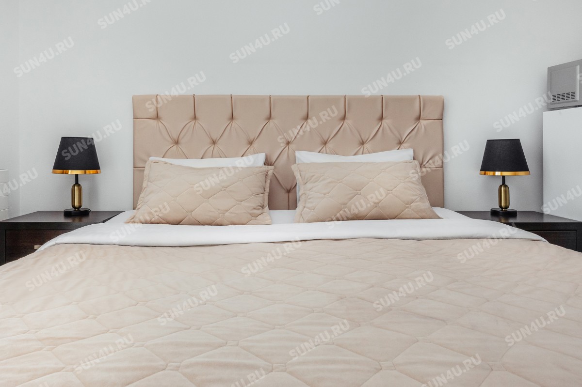 Апартамент подходит для проживания вдвоём на просторной двуспальной кровати размера "super king size" (180cm x 200cm) или родителей с ребёнком, который расположится на раскладном диване 90 х 200. При желании двуспальную кровать можно раздвинуть на две кровати по 90см х 200см.